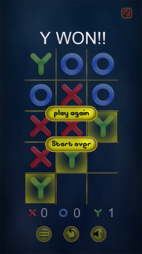 Three players are assigned X, O and Y. Each in turn places their symbol in an empty square on the grid. The first to achieve three in a row wins! One versus the computer, two versus the computer, or three people against each other. This revolutionary version of the classic game will be a favorite for many years to come.