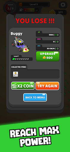As the game progresses, the zombies become more numerous and ferocious. To survive, you must continuously upgrade and improve your war vehicle. Add bulletproof shields, improve your firepower, and increase your speed. These improvements are necessary if you desire to defeat the hordes of zombies and maintain your survival.