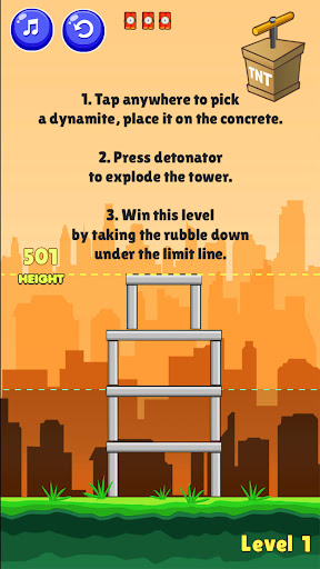 TNT Demolition TNT Demolition is a puzzle physics-based game, your mission is to destroy all towers by placing dynamites on the concretes structures.