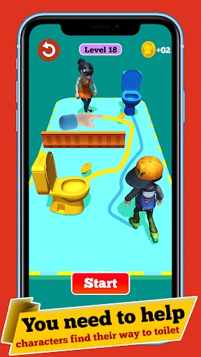 In this toilet rush race draw puzzle game you have to draw the shortest and fastest path to the toilet to cross the maze, reach the toilet, and release the pressure.