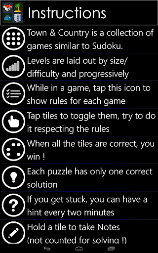 Choose among increasingly difficult and big puzzle levels, save your progress, undo, restart and take advantage of the hints to keep going when stuck.