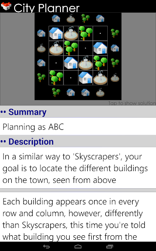 Train your brain with more puzzle games from "100 Logic Games" : More Tents and Skyscrapers, variants and bonus City Planner ----------------Can't stand Sudoku ?