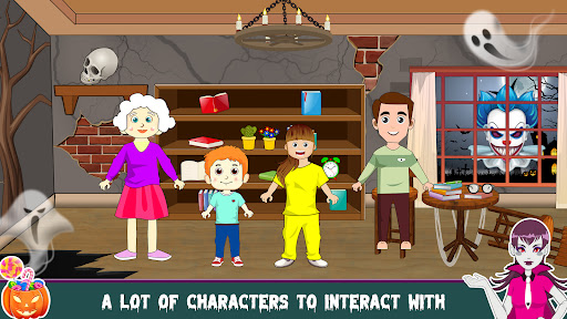Play and enjoy this haunted city life with a bunch of thrilling and scary activities which you will never experience before. Found out what is going on in a creepy ghost house. Midnight granny ghosts welcome you in her scary house of Pretend games. When the night comes dusk is all around so the mysterious house is covered with darkness and horrible evil voices come from everywhere. There is a group of scary ghosts in a granny horror game. A doll house witch is waiting for you to scream. You have to come back home carefully and hide from them in ghost role play.