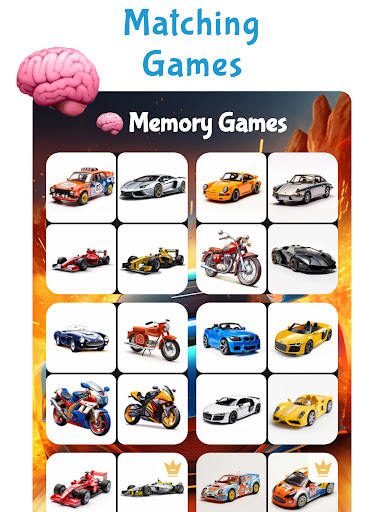 🧠 Cool Memory card games of cars and other different sports vehicles. Matching games can be a great way to teach your child how to recognize patterns and how to solve problems.