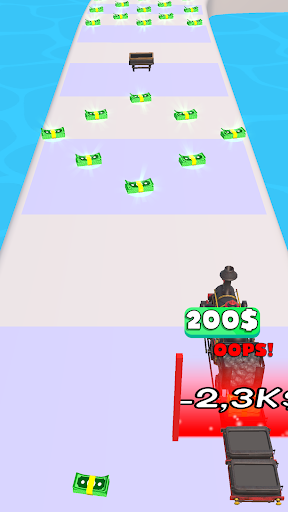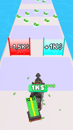 Collect as much money as possible to increase the value of your train, don't miss the wagons that will lengthen your train and collect even more money.