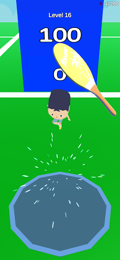 Whack the guy with the racket to hit the trampoline and jump as high as you can!