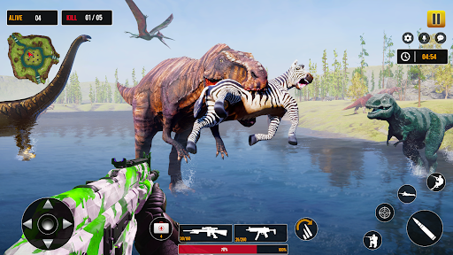 In the most popular dinosaur hunter game, be careful they may not run away from you in this dino hunter free game. Some wild animal game dinosaurs can run towards you and quickly grab your flesh in hunting games. There are various types of dinosaur hunter 2023 weapons that are better in stats, range and free in Jurassic World. Unlock different kinds of wild Jurassic deadly shore guns, upgrade your dino shooting games inventory and hunt down those dinosaur era monsters. This will free the land from the wild dinosaur survival simulator games terror they have invoked on our dino & games for kids land in animal games.