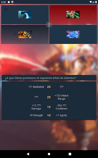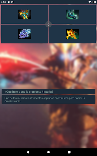 Ponte a prueba con esta trivia, respondiendo preguntas como '¿A que héroe pertenece el siguiente árbol de talentos?', '¿Qué artículo está hecho de estos componentes?', '¿Qué ítem tiene la siguiente historia?',y llegar al mayor puntaje posible!