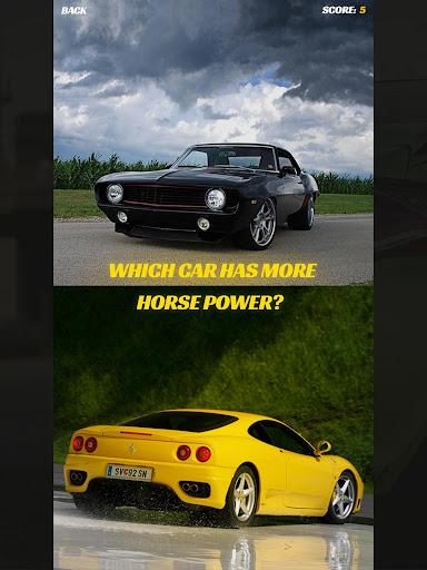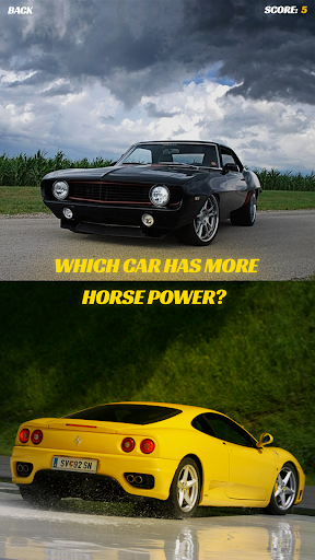 You will be shown two cars; you have to guess which one is more powerful.