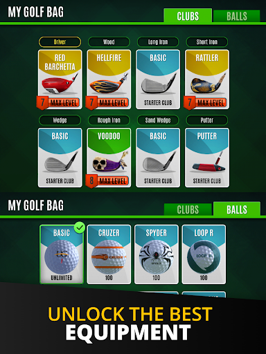 Increase your chances of winning by upgrading your gear with every victory. Gain rewards such as golf clubs, bags, and golf balls. Play frequently to rank up through the leaderboards, from the Amateur to the Pro Leagues.