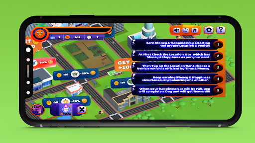 All you have to do is just tap on the location icons on the buildings & choose the vehicle you want to ride by. But be careful about the limited time. If you can reach the destination on time you will get extra money otherwise you will lose it. So choose the destination & vehicles wisely. The more you will complete daily objectives by saving time, the more you will get money.