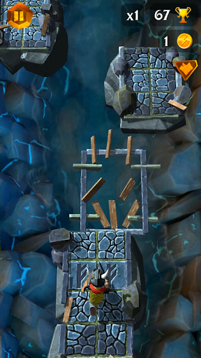 To pass the levels, you need to tap the screen in time so that the platform connects to previous one and creates a new road element like in a stack game. The smoother the road is built, the longer the knight will run and jump on it.