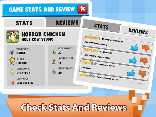 As a creator, you must check ratings and reviews of your games created on PC / Computer, Console, Mobile. Also check statistics such as number of installs and uninstalls of your games and become the best video game creator and a leader of games industry.