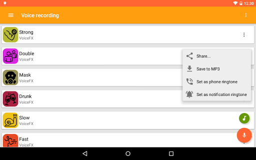 [✔] Save and share as MP3, set your changed voice as phone ringtone or notification ringtone
