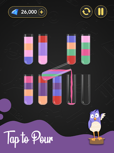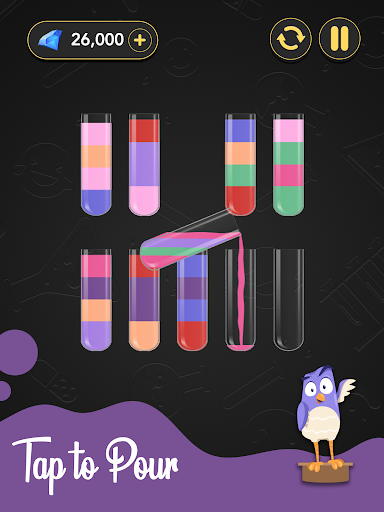 - Tap any water tube to pour the colored water into another tube and sort it!