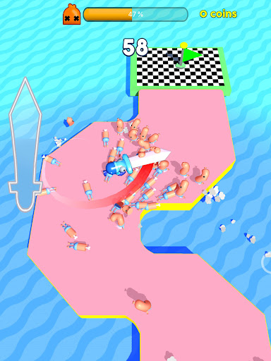 Move your avatar to slap ennemies, wiggle around and push them into the water, score goals and demolish blocks in this game of games !