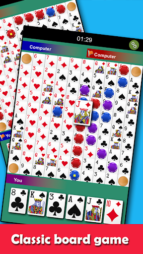 Create sequences of five with cards and chips, using wilds and jacks in this HD graphics board game. Play 2 or 3 players online.