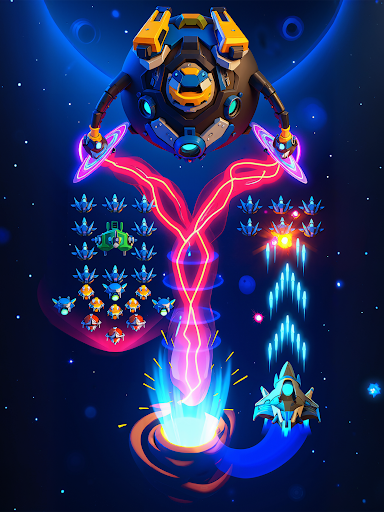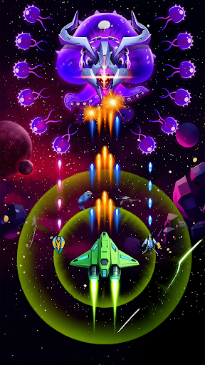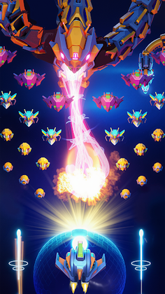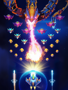 Immerse yourself in the futuristic world of WindWings: Space Shooter, Galaxy Attack; a shoot’em up game genre that takes place in a technological utopia. The plot follows a soldier who unexpectedly travels through time into the future where science and artifice have elevated humanity’s quest to explore the depths of space. In pursuit of a new home planet, humans have created a range of modern and powerful spaceships to battle malevolent creatures. These evil monsters not only threaten the commander’s fleet but also the very existence of the earth itself. You will be in control of the main spaceship, leading the fight against the invaders, and strategically deploying the fleet's resources to fulfill the mission.