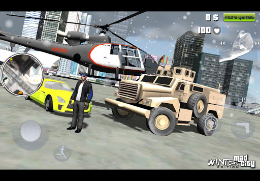 Deceive police, double-crossed the mafia, have fun, go for a drive on steep sport muscle cars, earn money at various works, promote your authority in the eyes of large mafias, that all depends on you! A huge number of weapons, awesome cars, girls, shootings, car pursuits, actions in the first part of the famous game Winter Mad City 2 New Storie!