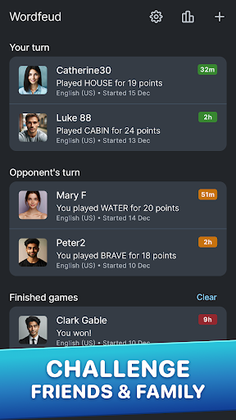 Search for friends to play against or allow Wordfeud to match you up with an opponent. Even chat with them - smack talk or praise - it's your choice!