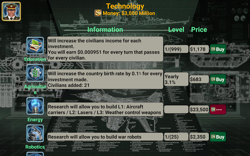* Hundreds of espionage, war, diplomatic, and economic options to shape your empire.