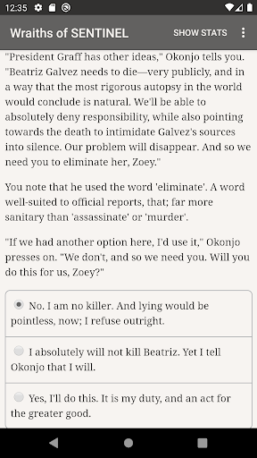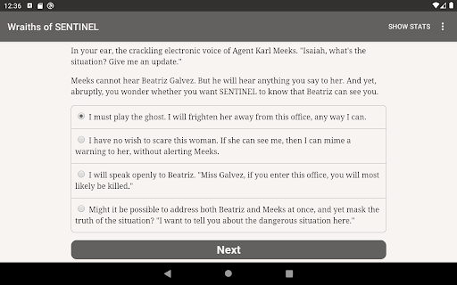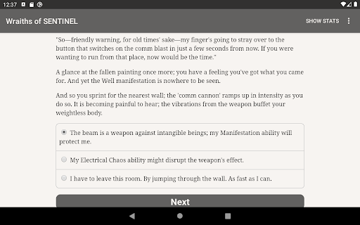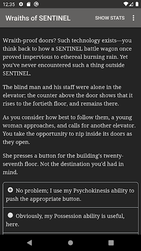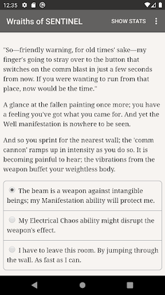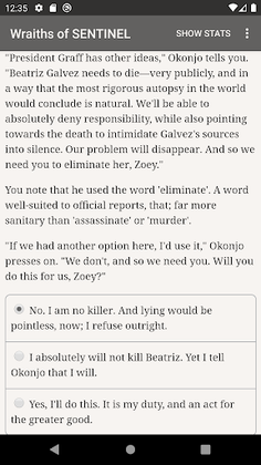 "Wraiths of SENTINEL" is a 250,000-word interactive novel by Paul Gresty where your choices control the story. It's entirely text-based—without graphics or sound effects—and fueled by the vast, unstoppable power of your imagination.