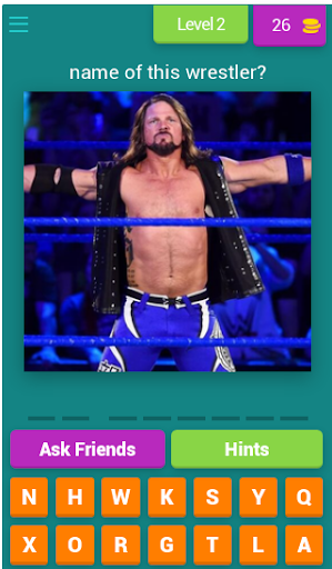 In the game, there are multiples LEVELS with images of acclaimed Wrestler individuals — which are very well known faces. Each level contains one positive calling. Gather coins, use them for taking clues, and complete the game 100%!