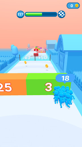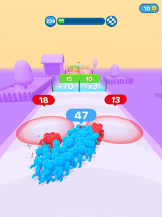 Go through the multipliers to maximize your crowd and overcome the challenges you will find on your way to the end of the level!