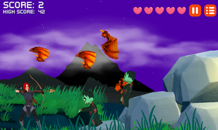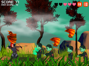 Archer hunts zombies, vampires, and monsters with bow and arrows in a 2D arcade-style game. Earn points, level up, and avoid getting attacked.