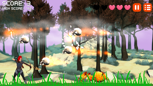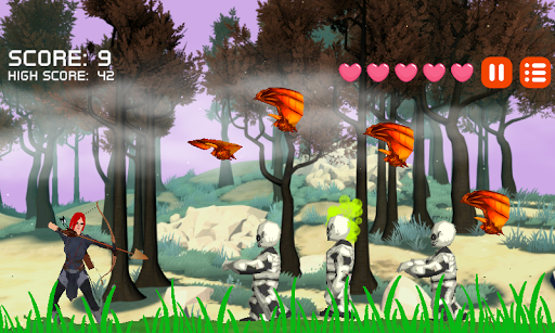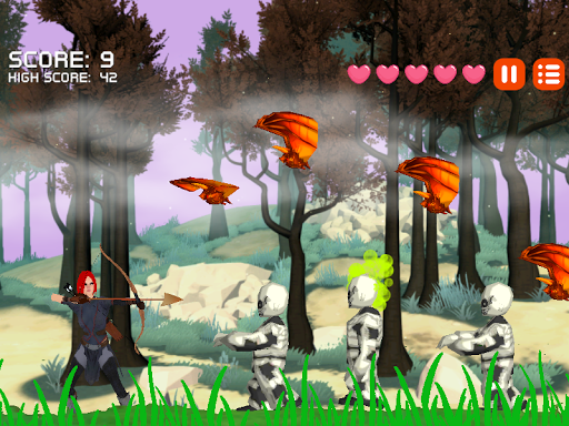 Step into a spooky arcade-style 2D archery adventure with "Archer Huntress." Equipped with a bow and an infinite number of arrows, your mission is to take down an array of hellish creatures including zombies, mummies, bats, ninjas, and other monstrous fiends. With a simple one-touch game-play mechanic, all it takes is the tap of your finger to make the archer pull the bowstring and release the arrow.
