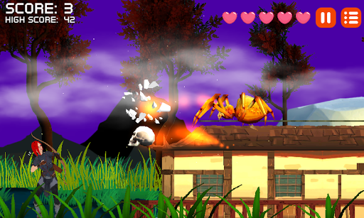 But it's not just about hitting targets. The closer your enemies get, the more dangerous they become, and if they manage to get too close, you will lose a life. Some enemies will require more than a single arrow to take down, so choose your targets carefully. And not all monsters will behave the same, some will jump and flip, making them much harder to hit. The game features huge boss battles, such as the daunting giant spider that will take several arrows to defeat.