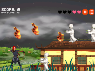 The game's 2D environment is rendered with chillingly surreal backdrops and immersive animations, complete with horror sound effects and eerie music. As you progress through the game, you'll unlock new environments and fresh kinds of creepy monsters to challenge your archery skills. As you work your way up the levels, you will even earn extra lives so you can fight on to the very end. Do you have what it takes to be the fearless Archer Huntress?